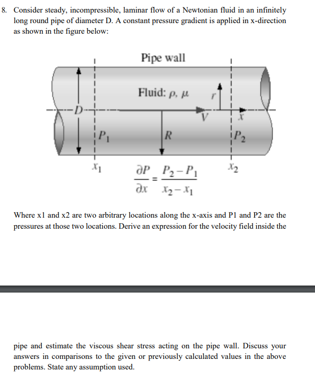 Solved 8 Consider Steady Incompressible Laminar Flow Of A Chegg Com