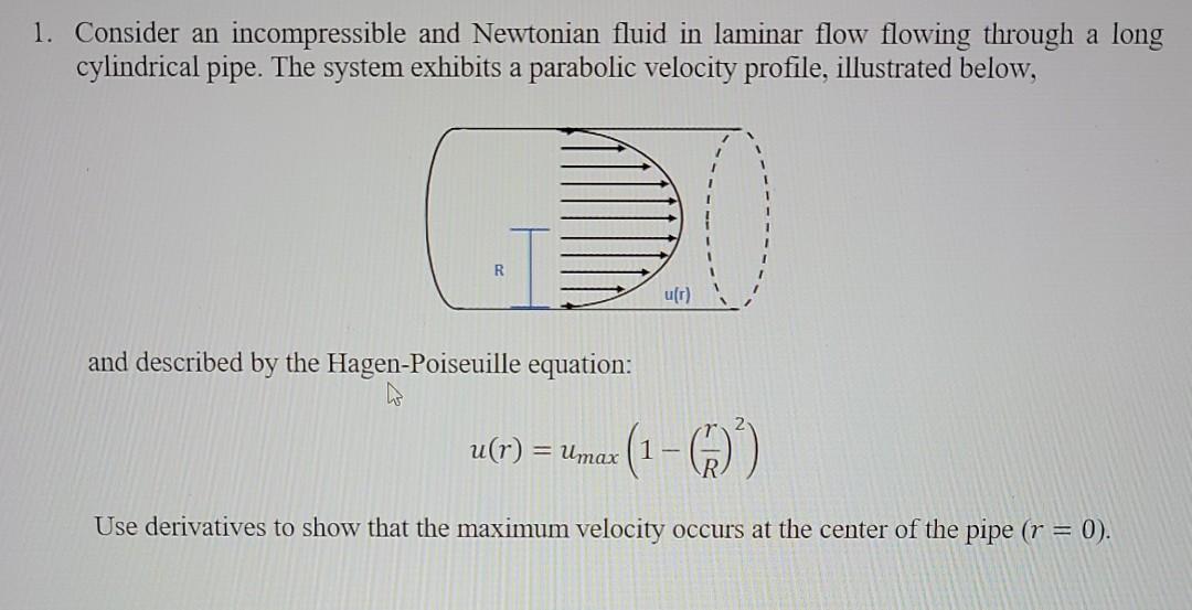 Solved 1 The Laminar Flow Of An Incompressible Newtonian Chegg Com